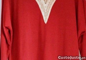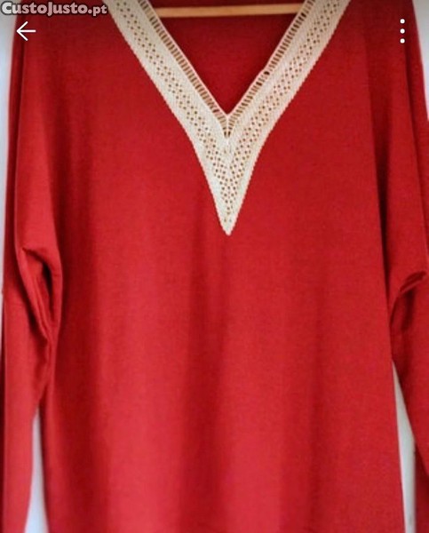 Preço: 9 €Blusa de senhora com decote em V bordado com renda
