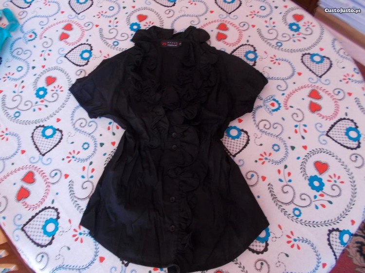 Blusa preta com muitos folhos.Tamanho S