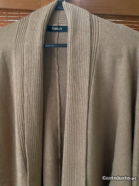 casaco de cor camel, tamanho unico, malha muito foinha, quentinho, com botao no punho, novo