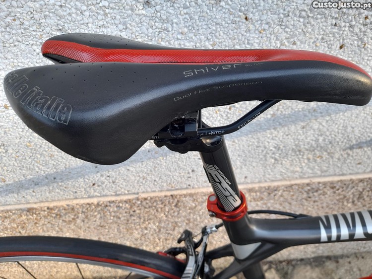 Vendo bicicleta de estrada Ghost nivolet tour lc2 em carbono grupo shimano 105 11v cassete 32x11 travões guiador espigão de guiador espigão de selim e pedaleiro FSA gossamer o pedaleiro é 50x34 selim selle Itália rodas Fulcrum racing 5.Todas as peças em vermelho tenho em preto as originais.