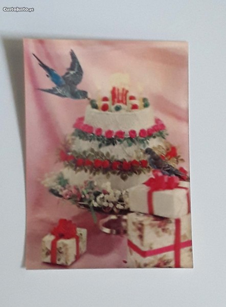 Preço: 2 €Antigo cartão postal 3D lenticular, com Bolo de Aniversário