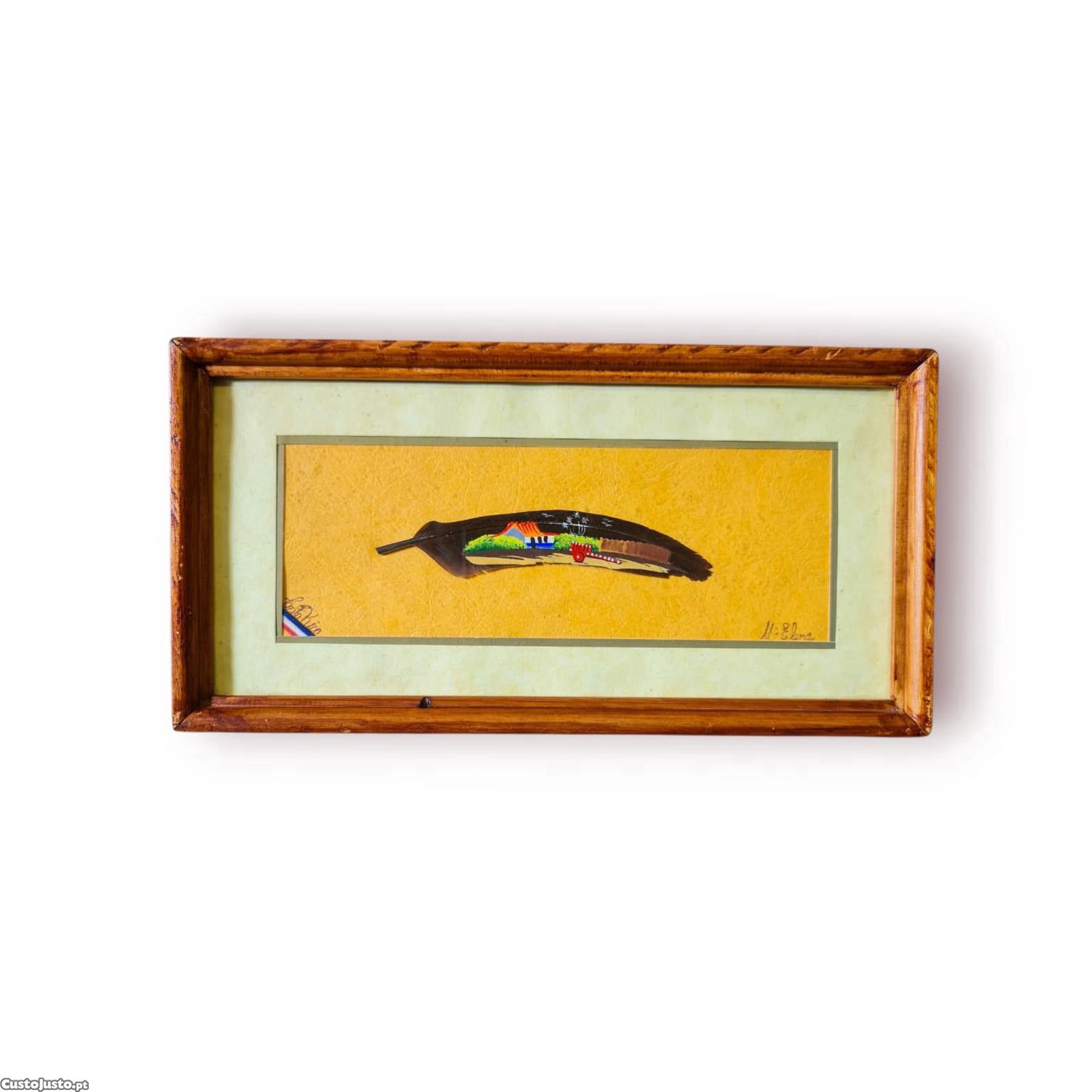 Preço: 30 €Quadro Pintura sobre Pena Natural Paisagem Rural por Mª Elena (Costa Rica)