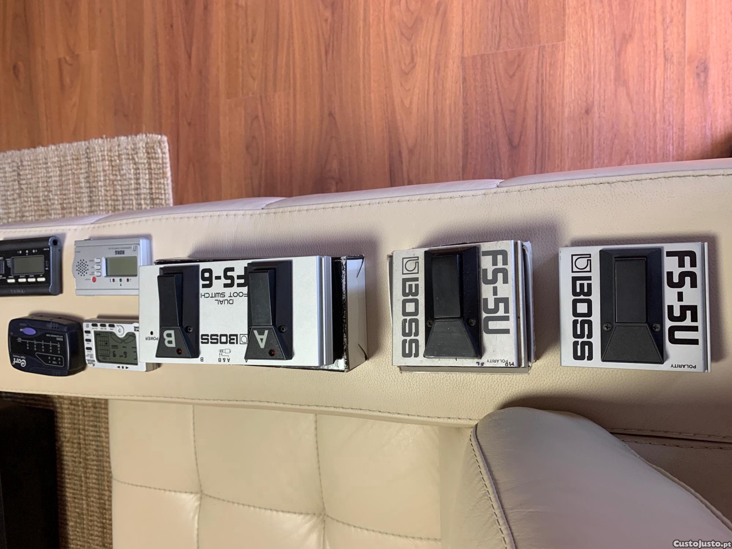 Pedaleira Boss GT10 em bom estado com estojo está parada sem uso 200 euros , pedal boss FS 5U 30 euros , pedal FS 6 55 euros , afinadores 7 Euros cada .preço fixo