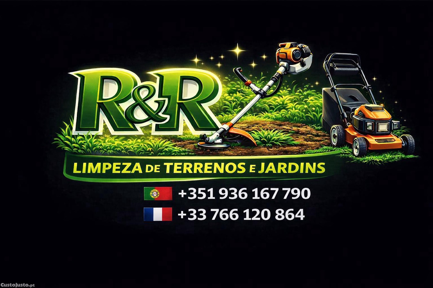 Confie R&R onde dispomos de serviço de corte de relva em jardins e limpeza de terrenos com recurso a roçadora.