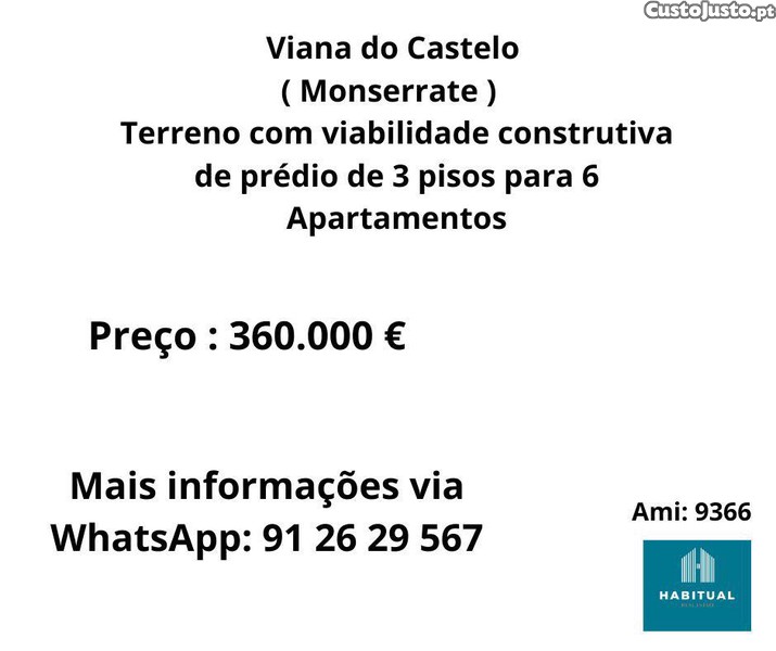Preço: 360 000 €Lote para prédio de 3 pisos em Viana do Castelo