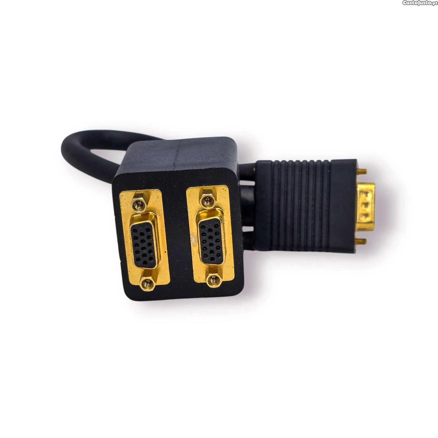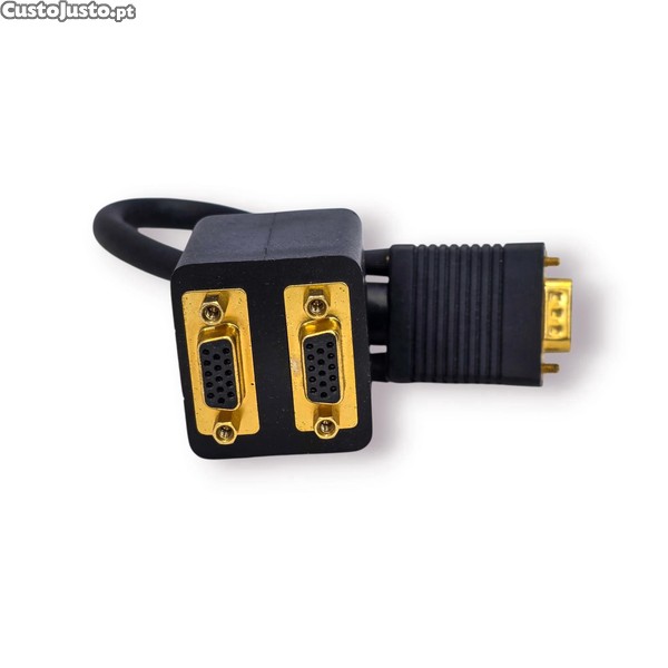 Adaptador VGA splitter (divisor de sinal) ideal para ligar um dispositivo com saída VGA a dois monitores ou ecrãs compatíveis. Uma solução prática e funcional para ambientes de trabalho, apresentações ou setups mais antigos que utilizam ligação VGA.