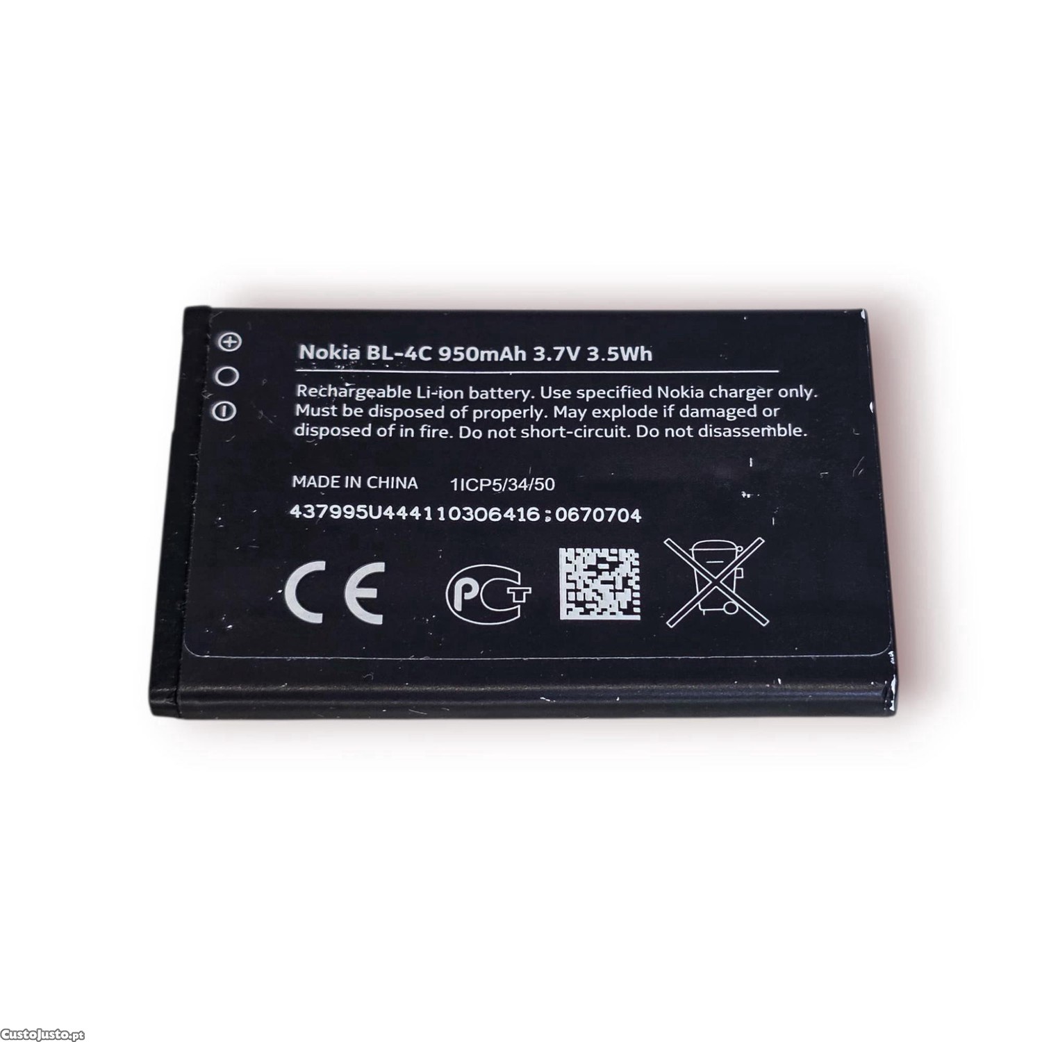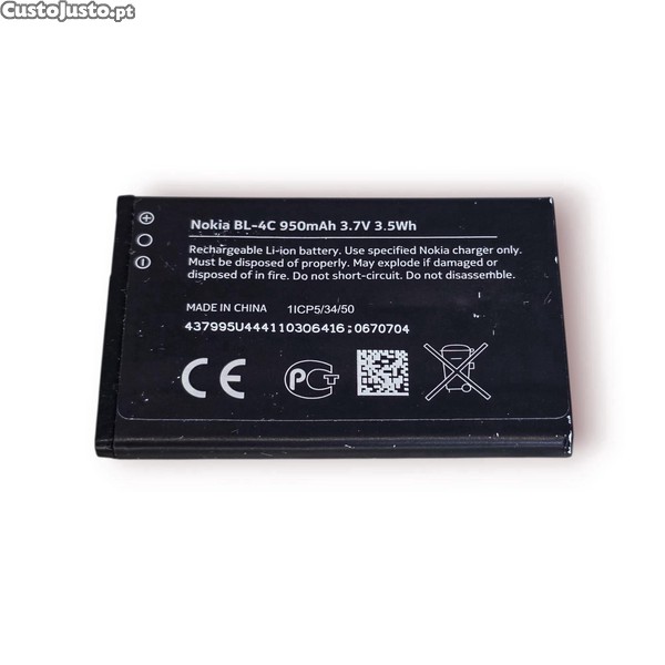 Preço: 13 €Bateria Nokia BL-4C 950mAh 3.7V Original Testada e Funcional