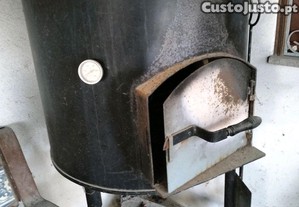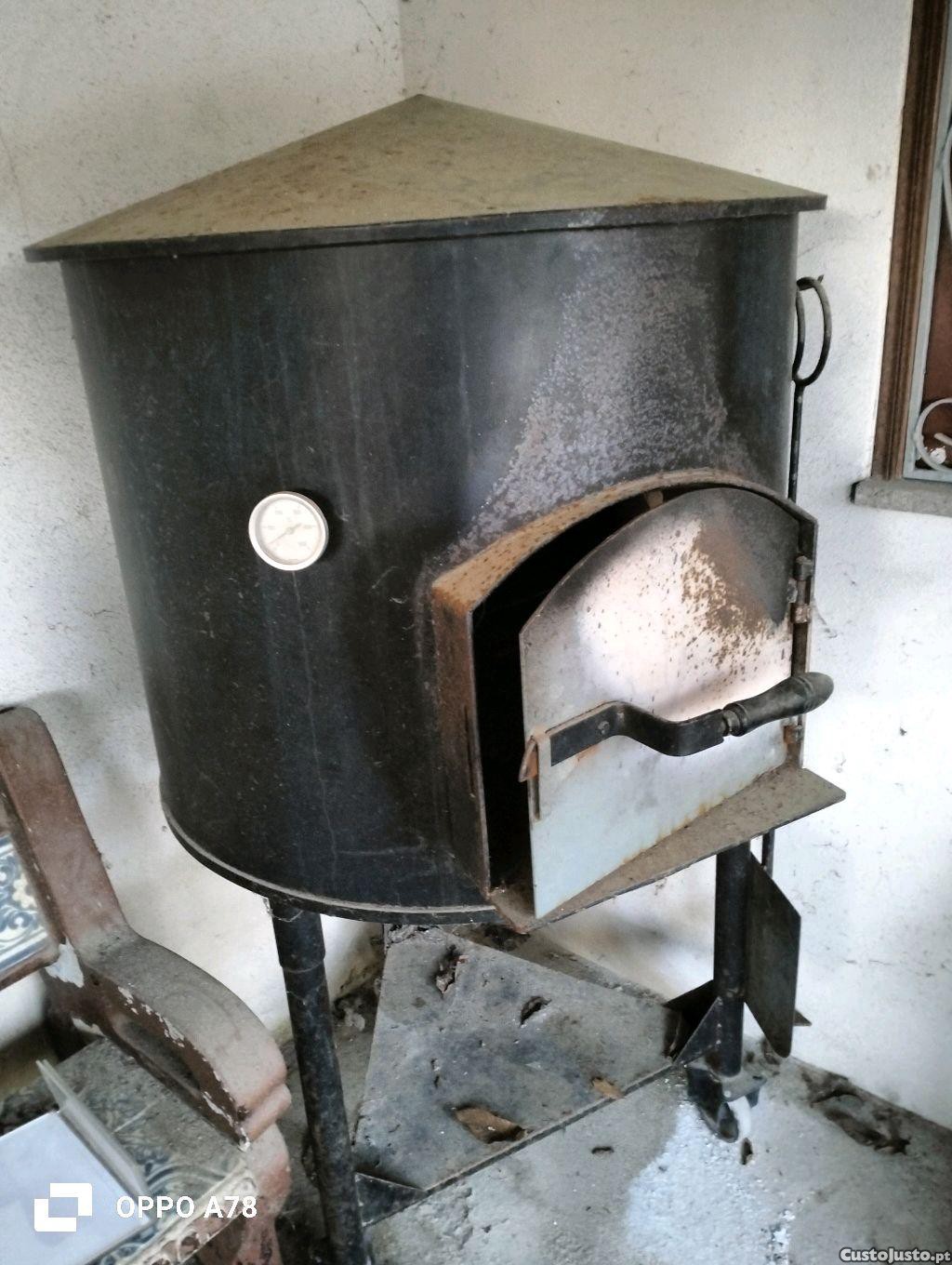 Forno à lenha para cozer pão,também dá para cozinhar cabrito ou leitão.Tem rodas para se deslocar, sendo móvel. Ideal para deslocar para espaços livres, perto do seu jardim. Tem manómetro de temperatura e acessórios para o serviço. Tive pouco uso, só foi usado 2 vezes e está em bom estado de conservação em local abrigado.Tem 1,40m de altura x 85cm de diâmetro (sua largura, em redondo) e tem o tripé onde circula as rodas 65cm.