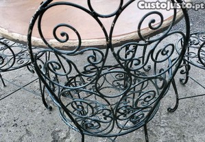 Conjunto; mesa e 4 cadeiras metálicas, ideal para jardim, nos espaços livres de lazer.