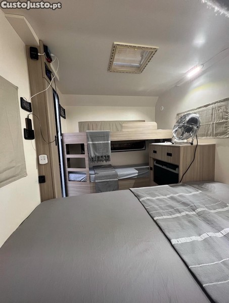 Caravana Vimara Toy com uma cama de casal, um beliche, sem wc, depósito de água limpa 80 lts, autónoma com painéis solares e bateria, bomba de água para apoio a lavatório interior e torneira com mangueira exterior, luzes de led interiores e exterior, arca alimentada a 12v ou 220v, pneus novos, com documentos, toda remodelada (está completamente nova possibilidade de enviar fotos do restauro)