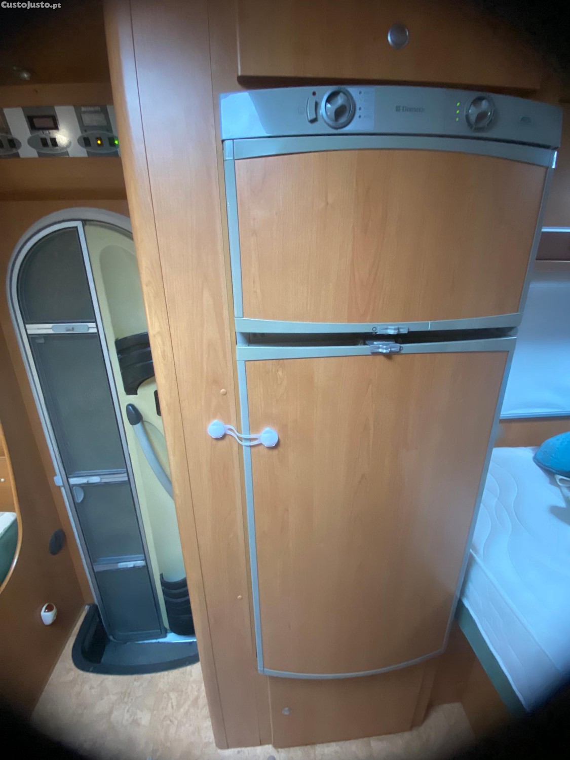 Temos disponível para venda Frigorífico trivalente da marca Dometic modelo RM 7655l, em perfeito funcionamento. Funciona de forma independente tanto a gás, como a 12 volts ou 220 volts. Dividido em duas zonas, congelador e a de refrigeração com um total de 151 litros de espaço e com cerca de 1.25 metros de altura, que nos permite maior autonomia nas viagens. Com acabamentos em madeira e fechos de bloqueio para ambas as portas.