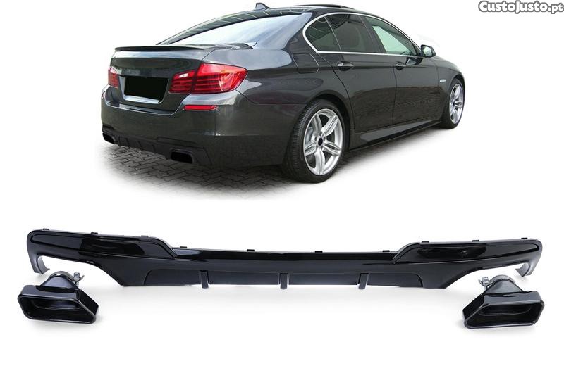 DIFUSOR TRASEIRO BRILHANTE BMW SÉRIE 5 F10/F11 + PONTEIRAS DE ESCAPE 550 PRETO
