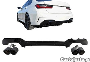 DIFUSOR TRASEIRO PARA BMW SÉRIE 3 G20 G21 + PONTEIRAS DE ESCAPE CARBONO DUPLAS