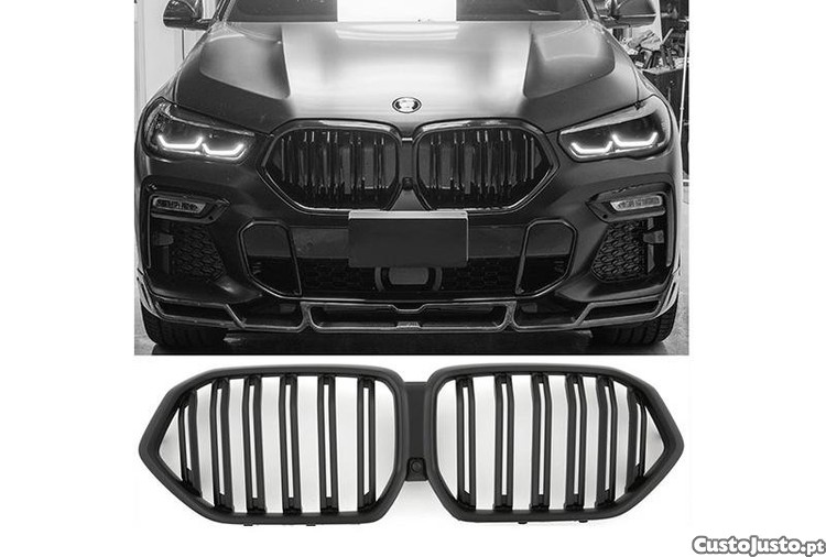 Grelha Dianteira Lama Dupla Preto Fosco Para Bmw X6 G06 2019--