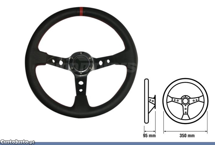 Volante invertido desportivo com diâmetro de 350mm e profundidade de 95 mm.