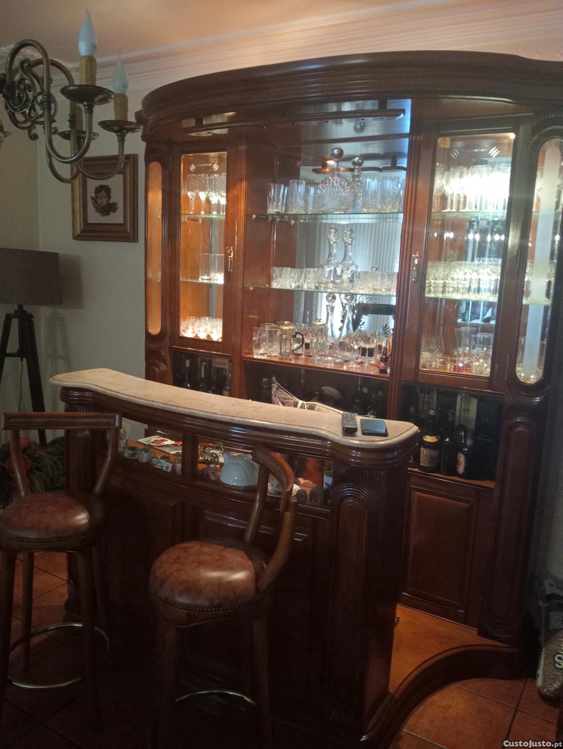 Vendo cristaleira clássica com mesa de bar e 2 cadeiras