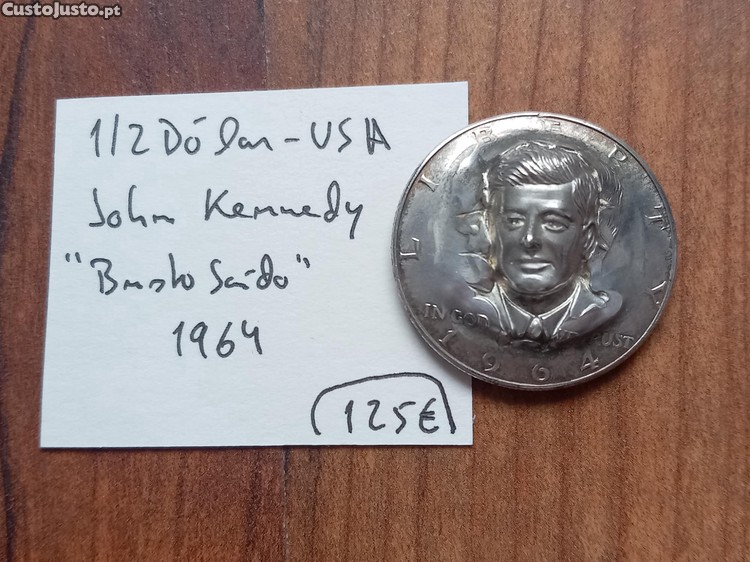 Preço: 115 €Moeda 1/2 Dólar USA 1964 Kennedy, busto saído