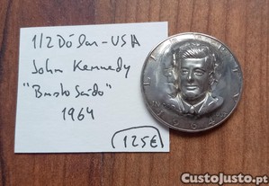 Moeda 1/2 Dólar USA 1964 Kennedy, busto saído