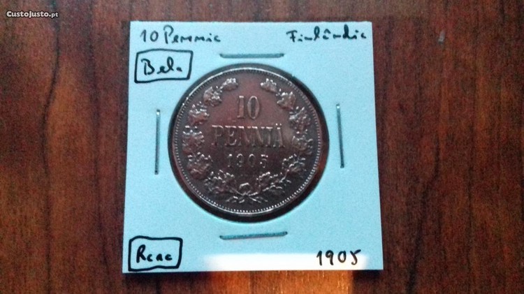 Preço: 49 €Moeda 10 Pennia 1905 Finlândia - Bela!