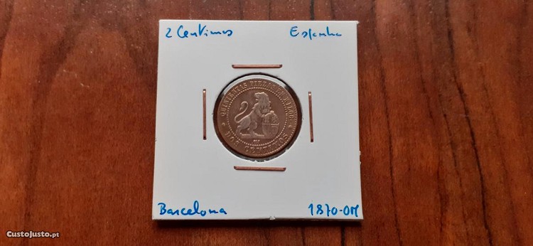 Preço: 19 €Moeda 2 Cêntimos 1870 Barcelona- Espanha