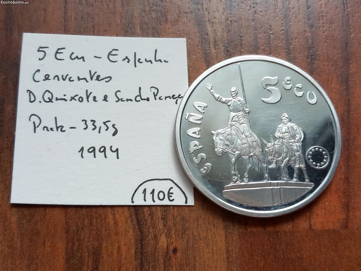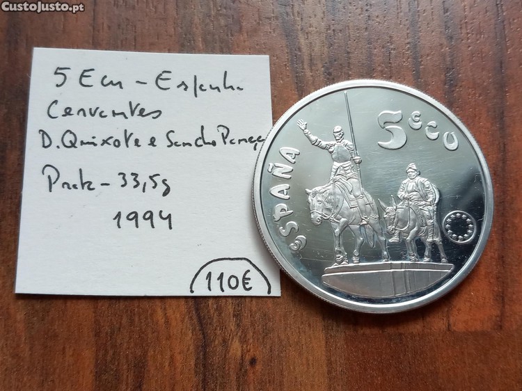 Preço: 105 €Moeda 5 Ecu Espanha 1994 D. Quixote e Sancho Pança