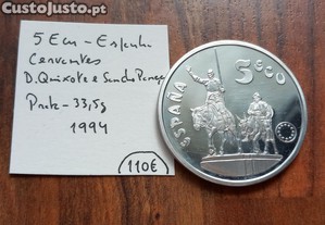 Moeda 5 Ecu Espanha 1994 D. Quixote e Sancho Pança
