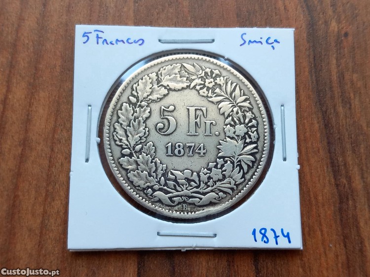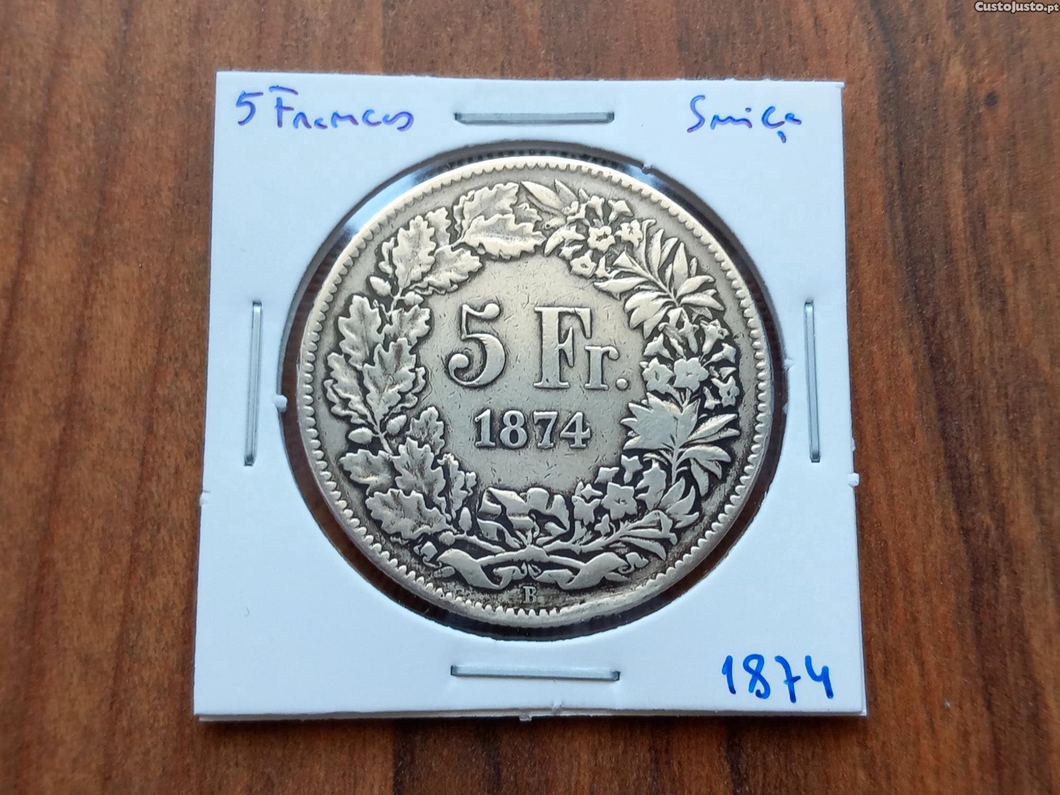 Preço: 255 €Moeda 5 Francos 1874 Suíça