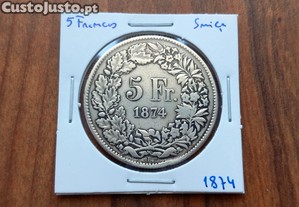Moeda 5 Francos 1874 Suíça