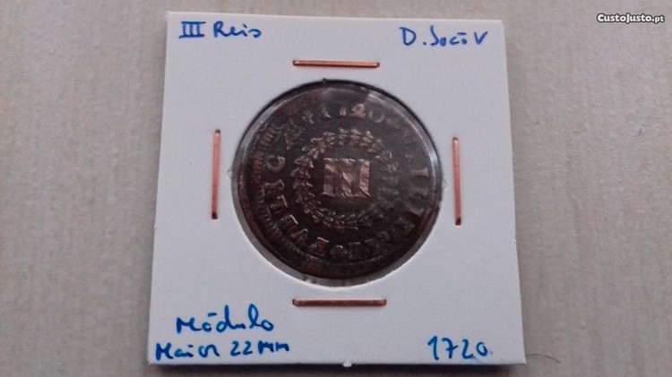 Moeda III Reis 1720 D. João V - Módulo Maior