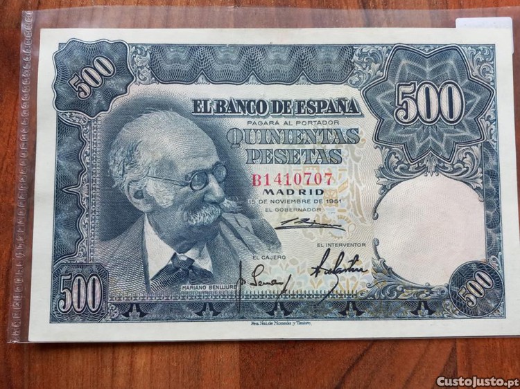 Preço: 99 €Nota 500 Pesetas 1951 Espanha
