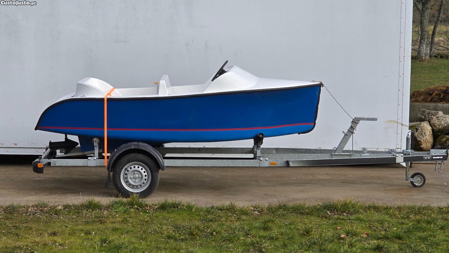 Vendendo o meu barco elétrico com a marca Bleu Ruban. Sem licença, com 2 pilhas 180 Ah, reboque, colete salva-vidas.