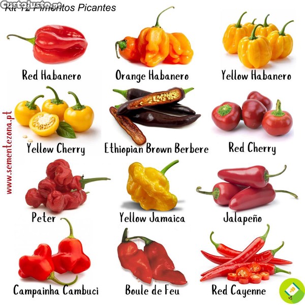 Preço: 10 €Conjunto/Pack Sementes de 12 variedades de Pimentas Picantes