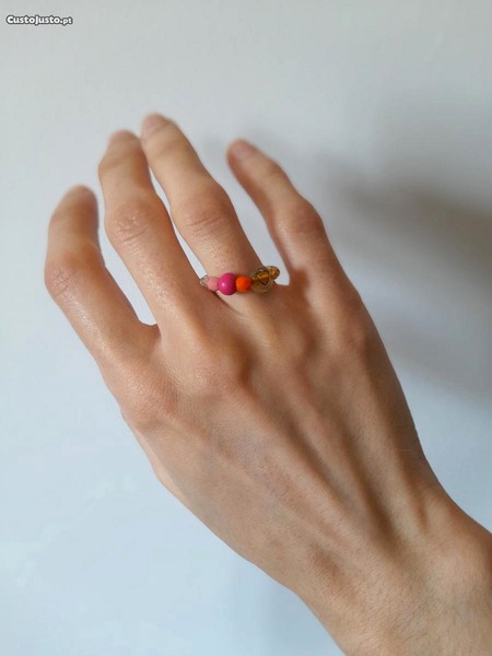 Preço: 4 €Anel colorido com coração bijuteria de missangas