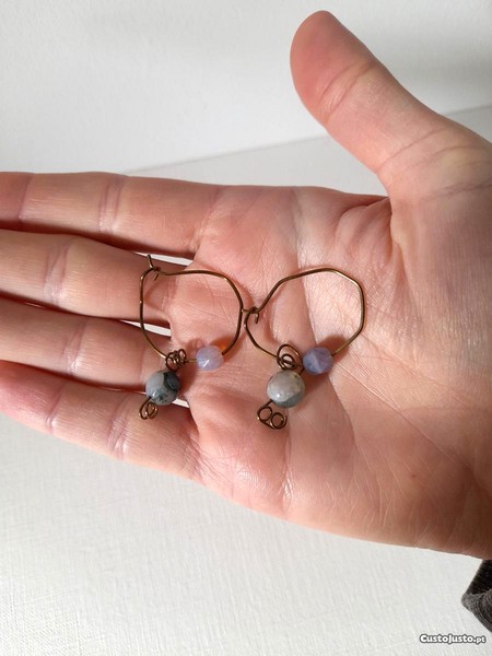 Preço: 4 €Brincos de argola com cristal e pingente de pedra natural