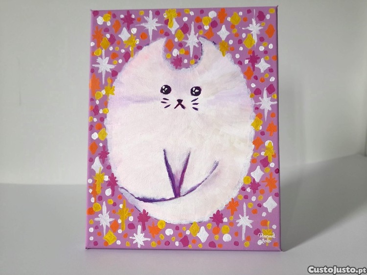 Preço: 125 €Quadro 24cmx30cm Retrato Abstrato Gato Branco