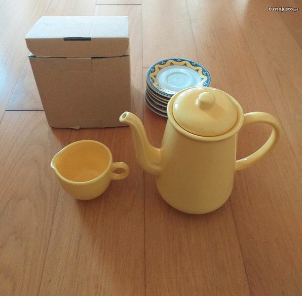 Preço: 12 €Conjunto bule chá/leite, 1 leiteira e 6 pires