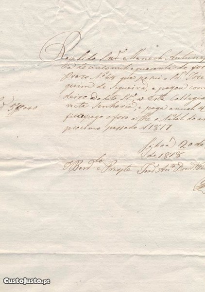 Preço: 15 €Recibo de Santo Estevo de Alfama de 20/12/1818
