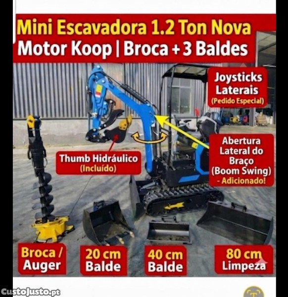 Preço: 6 400 €Mini Escavadora 1.2T NOVA Boom Swing + Broca + 3 Baldes