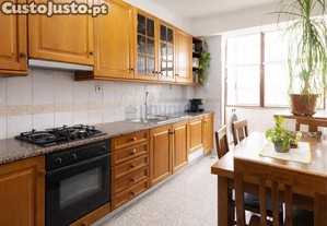 A cozinha é espaçosa e prática, oferecendo boas áreas de circulação e acesso a marquise, ideal para zona de lavandaria ou arrumação adicional.
