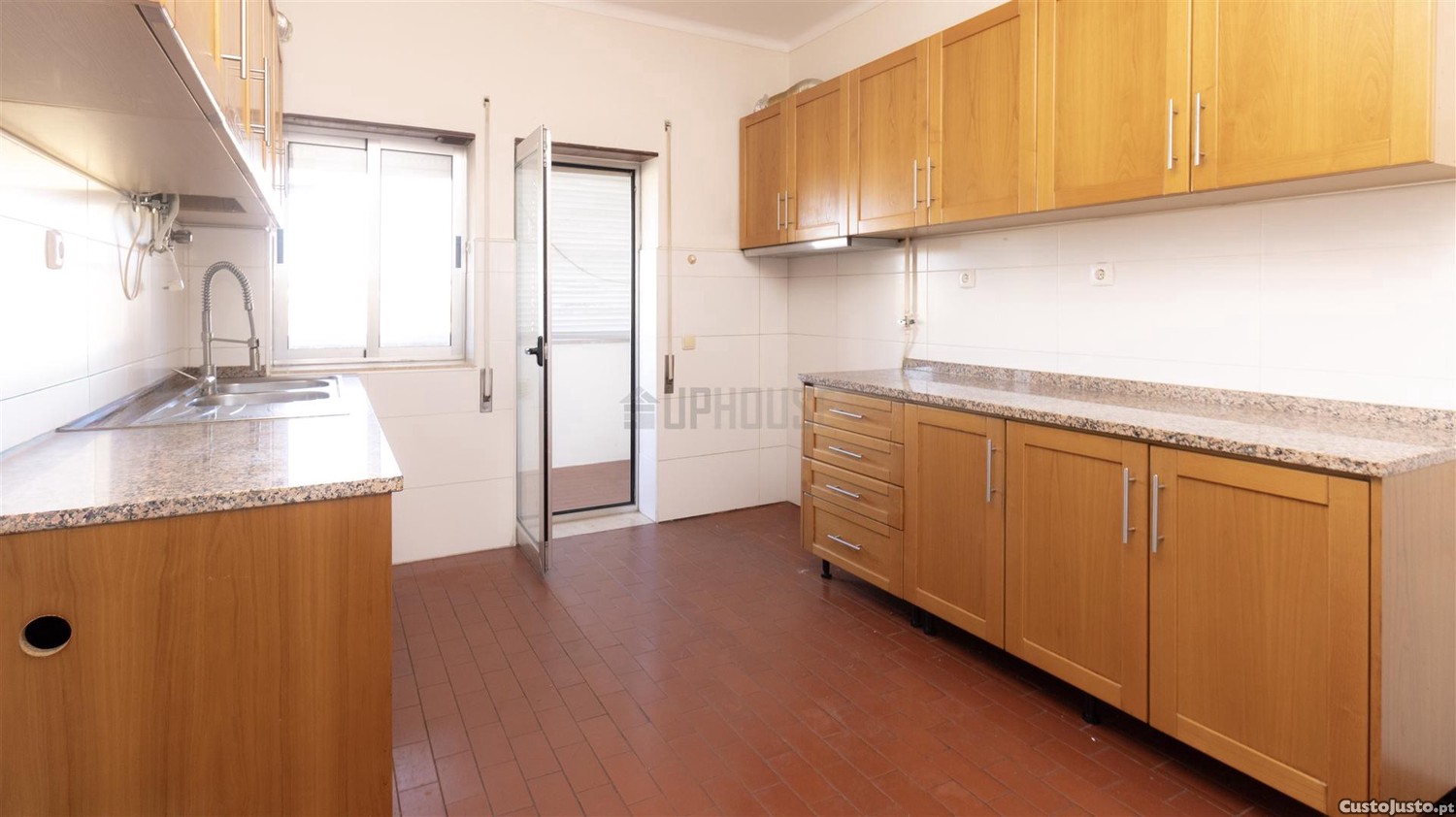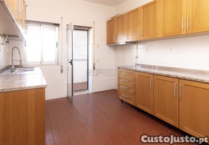 Conta com três quartos, sendo que dois deles dispõem de roupeiros embutidos e acesso direto a varanda, oferecendo maior conforto, luminosidade natural e espaço exterior. O apartamento dispõe ainda de dois WC, sendo um completo e outro de serviço, garantindo maior praticidade no dia a dia.
