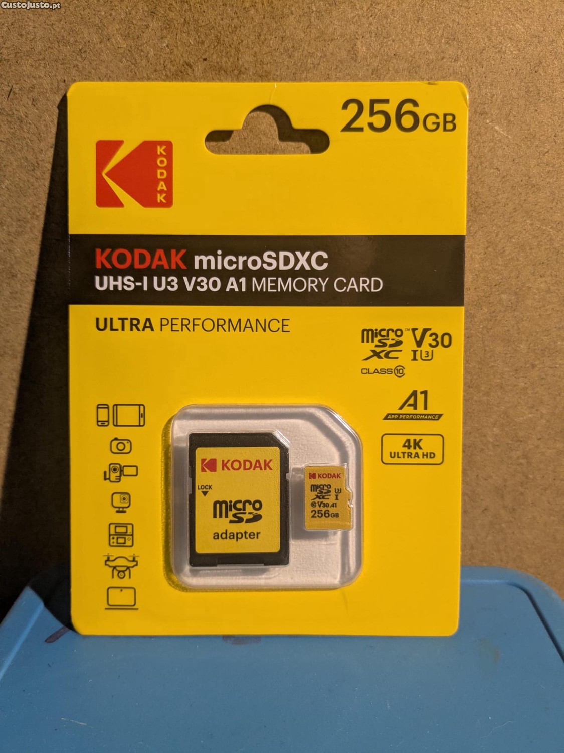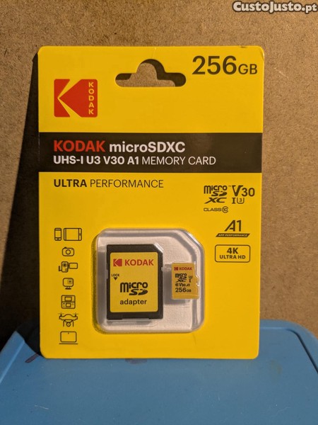 Preço: 30 €Cartão de Memória Kodak Ultra Perfomance Micro SDXC 256GB UHS-I U3 V30 A1 com Adaptador