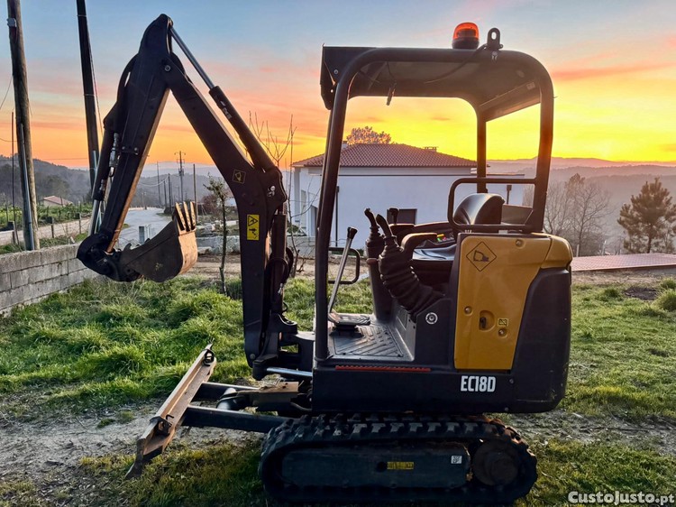 Mini giratória com 1.8T, com 1000 horas de trabalho. Largura dos rastos variável. 3 baldes. Braço de variação angular . Rastos em excelente estado . Certificado de conformidade e livro de instrução numa PEN oficial VOLVO