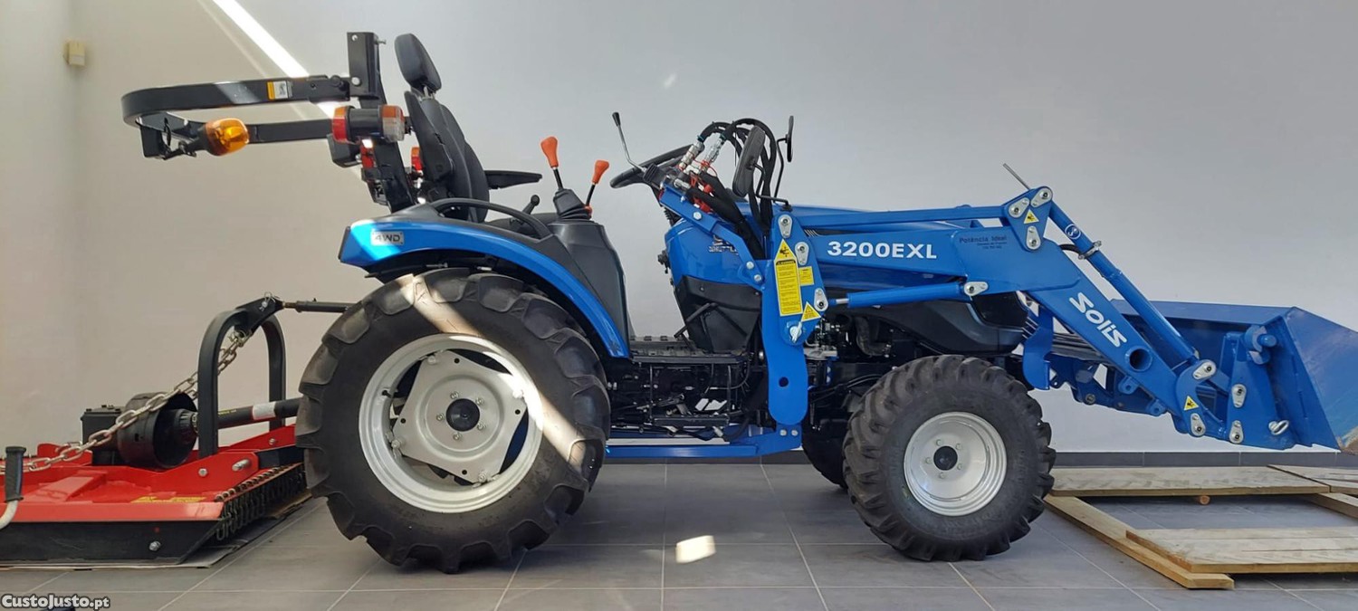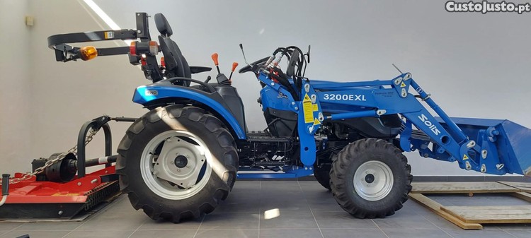Tractor Solis 26 XL com carregador frontal da marca Solis e capinadeira de 1m.
